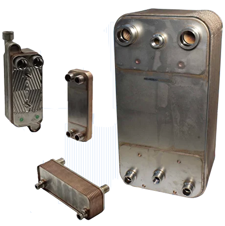 Это неразборные компактные аппараты, в которых пакет гофрированных пластин из нержавеющей стали соединяется в высокотемпературной вакуумной печи с помощью припоя — чаще всего меди или никеля .