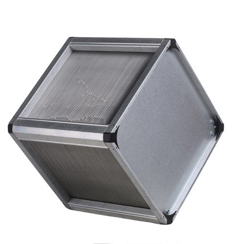 Алюминиевый теплообменник хорош тем, что алюминий имеет очень высокий коэффициент теплопередачи и при этом является “гигиеничным” металлом. Никакой коррозии и никаких запахов! Это очень хороший материал для высоконапорных систем рекуперации. Алюминиевые пластинчатые рекуператоры подходят для использования в бытовых и промышленных системах вентиляции с рекуперацией. Это самые популярные теплообменники.